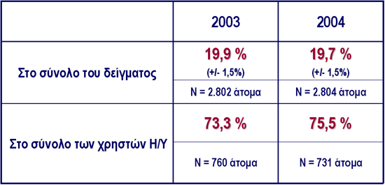 ΕΘΝΙΚΗ ΕΡΕΥΝΑ ΓΙΑ ΤΙΣ ΝΕΕΣ ΤΕΧΝΟΛΟΓΙΕΣ ΚΑΙ ΤΗΝ ΚΟΙΝΩΝΙΑ ΤΗΣ ΠΛΗΡΟΦΟΡΙΑΣ 2004