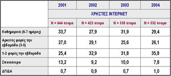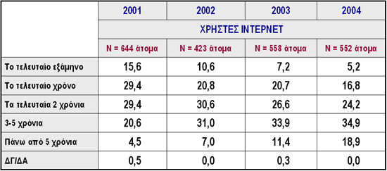 ΧΡΟΝΟΣ ΧΡΗΣΗΣ ΔΙΑΔΙΚΤΥΟΥ, 2001 - 2004