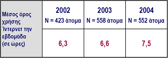 (Απαντούν όσοι χρησιμοποιούν Ίντερνετ, 2002: 423 άτομα, 2003: Ν = 558 άτομα, 2004: Ν = 552 άτομα)