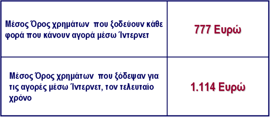 Χρήματα που ξοδεύουν για τις αγορές τους μέσω Ίντερνετ, Μέσος όρος σε Ευρώ