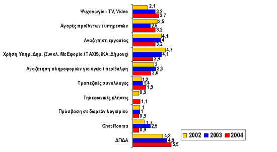 ΚΥΡΙΟΤΕΡΟΙ ΛΟΓΟΙ ΠΡΟΘΕΣΗΣ ΧΡΗΣΗΣ ΤΟΥ ΔΙΑΔΙΚΤΥΟΥ, 2002 - 2004