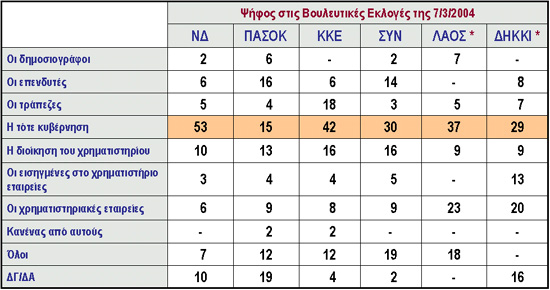 (Κατά ψήφο στις Βουλευτικές Εκλογές του Μαρτίου 2004)