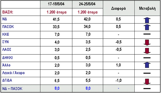 | Πολιτικό Βαρόμετρο Ευρωεκλογών - 5ο Κύμα 24-25 Μαϊου 2004 |