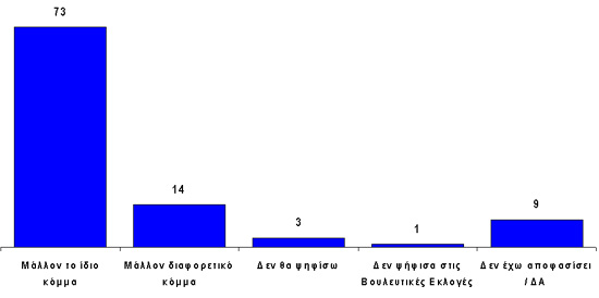 Στις Ευρωεκλογές σκέφτεστε να ψηφίσετε μάλλον το ίδιο κόμμα που ψηφίσατε και στις Βουλευτικές εκλογές του Μαρτίου, ή σκέφτεστε να ψηφίσετε μάλλον διαφορετικό κόμμα;
